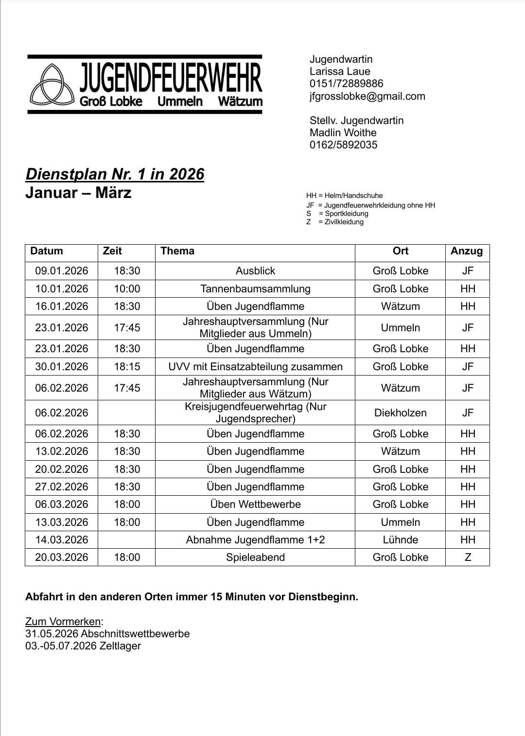 Jugendfeuerwehrwartin Larissa Laue, Tel.: 01517 – 288 98 86